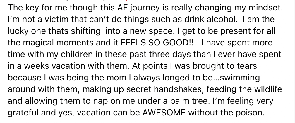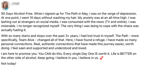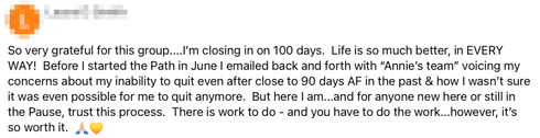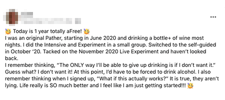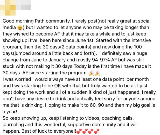 Most people stop drinking within just a few months of starting The PATH, which is amazing! (And if you are already alcohol-free that is great!)